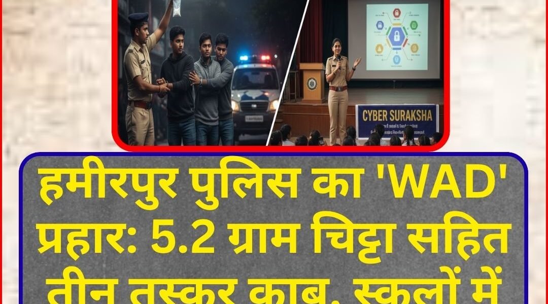 हमीरपुर पुलिस का ‘WAD’ प्रहार: 5.2 ग्राम चिट्टा सहित तीन तस्कर काबू, स्कूलों में साइबर सुरक्षा पर संवाद